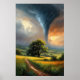 À medida que o ensalhe tranquilo respira debaixo de uma canvas cerulana, a fúria da natureza desperta. Contemplem, uma tempestade titânica dança no horizonte, uma rendição artística do caos e da calma entrelaçada. Um tornado colossal emerge, uma obra-prima giratória de admiração e pavor, enquanto a serenidade do campo se posiciona para uma dança com o destino.