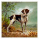 Cão caçador com pássaro na boca. Desenho colorido da safra. Retriever com pele de caçador colorida