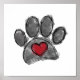 Impressão de pata de cão e aquarela cardíaca em vermelho, preto e cinza. Posters personalizados para residências e empresas. Ideia de presente para amantes de cães.