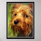 Uma fotografia fofa do rosto de um terrier. Ele parece todo molhado e tem um ouro bonito de pelo castanho rosado.