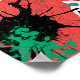 Um trabalho de arte de abstrato cheio de quadros de tinta em negrito, onde vermelho, preto, branco, verde e azul claro colidem em movimento dinâmico. Blocos de tinta explosiva espalham-se pela canvas, criando uma sensação de caos e energia. As camadas sobrepostas, gotas e gotículas dispersas dão à peça um estilo espontâneo inspirado no grafite que enfatiza a expressão e o movimento brutos.