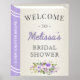 Sinal de boas-vindas elegante com tema de conto de fadas roxo, desenhado como uma capa de livro. Ótimo para uma recepção de noiva, aniversário, chá de bebê ou outra ocasião com tema de conto de fadas/biblioteca. Para mais cores e itens correspondentes (convites, inserções, decorações e mais), por favor visite minha loja Zazzle.