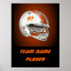 Capacete de futebol branco e laranja personalizável. Adicione o logotipo, o nome, o nome do jogador e/ou o número da sua equipe. Faz um presente de excelente para jogadores de futebol, treinadores de futebol, adeptos de futebol, jogadores de futebol da liga de fantasia e muito mais.