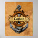Não deixe dúvidas de quem é o Capitão, com o leme e âncora de uma nave clássica. O Capitão pode ser mudado para acomodar qualquer classificação ou nome da sua tripulação de barco. Background é um mapa náutico vintage das Chaves da Flórida com um rosa de bússola.