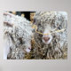 Um design fotográfico de duas cabras angorais muito bonitas com decoração de palha.