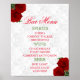 Póster Cardápio de Bar de Casamento Floral Rosa Vermelho