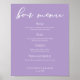 Poster Cardápio de Bar de Casamento Tipografia Roxo Lilás