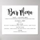 Cartaz de cardápio de barra de casamento casual chic / sinal apresenta tipografia de letra simples e moderna e um esquema de cores preto e branco clássico. Pronto para personalizar para o seu evento.