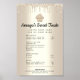 Apresente seus deliciosos produtos assados aos seus clientes com estes cartões de mesa ou pôsteres de lista de preços de menu personalizados elegantes, sofisticados, simples e modernos. Um cupcake dourado champanhe cintilante, tipografia manuscrita e gotas de brilho sobre um fundo ombre metálico dourado champanhe falso. Personalize com o nome da sua empresa, informações completas de preços e informações de contato com os modelos personalizáveis. Faz uma declaração chique, profissional e elegante para o seu negócio.