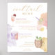 Doce, azedo e cítrico cardápio de coquetel de casamento infundido com amor! Nossa coleção de casamento moderna para coquetéis cítricos e florais captura um clima de coquetel de verão. Paleta de cores suaves e silenciadas inspiradas em coquetéis com tons cítricos de pêssego, amarelo, verde e lavanda explodindo com as cores do verão. Nossas ilustrações de coquetéis em aquarela são pintadas à mão por nós em aquarela e depois digitalizadas e organizadas para produzir este lindo design floral cítrico. Confira nossos outros itens de casamento correspondentes para esta coleção. Desenho original e ilustrações por Moodthology Papery