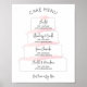 Cardápio de sabores de bolo feminino com gráfico de bolo de 4 andares e espaço para nomes de sabores personalizados para cada camada. Este sinal de bolo de casamento estético rosa claro é perfeito para criar um cardápio de bolo personalizado para sua barra de bolos, recepção de casamento ou boutique de bolos. Mais opções de andares disponíveis em nossa loja!