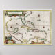 Mapa elegante do Caribe criado por Blaeu em 1635.