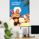 Caribe, poster, jovem perseguindo uma mulher na praia. Poster engraçado em alta resolução, com um texto que você pode editar.