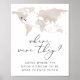 Este sinal de jogo 'onde eles estavam' apresenta um mapa de mundo de cor d'água bege e e uma fonte elegante de script. Este é um jogo tão divertido para o seu chá de panela temático viagem. Junte as fotos favoritas do seu casal para um grande sucesso no seu evento.