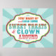 Bonitas guloseimas e palhaços em torno de placas para uma festa de carnaval ou de aniversário de circo.