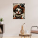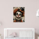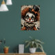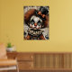 Carnaval rachado - A Poster de Mascarada Melancolia Uma criança amargurada de palhaço olha através dos olhos ocos, sua face pálida pintada com dramática maquiagem negra e uma expressão fraturada. Derramares de cabelo Frizzy auburn por baixo de um chapéu preto adornado com um arco laranja, enquanto um colarinho rufado arma uma fantasia vintage em tons desbotados de laranja e azul. Ao redor da figura estão abóboras fantasmas e fragmentos de texto envelhecido, evocando uma nostalgia assombrada. Os hums de composição com profundidade emocional e elegância estranha — onde o capricho encontra o cansaço, e cada crack conta uma história.