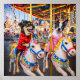 Luna the Boston Terrier and Louie the JackChi are enjoying the amusement park with a ride on the merry-go-round.