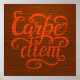 Poster de tipografia manual com letra de mão.Citação inspiradora 'Carpe diem' (tradução latina: aprecia o dia capturando o momento) sobre fundo de madeira. | Bigstock® - Todos os direitos reservados.
