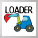 Um grande carregador de front-end de azul, verde e vermelho com grandes pneus pretos e texto que diz "Carregador" em T-shirts com carregador de frente, carrocerias, bíblias, bolsas, ímanes, brinquedos recheados e outros artigos excelente para crianças que gostam de grandes veículos de construção!