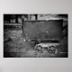 Foto preta e branca de um antigo carrinho de ouro