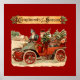 Esta arte safra é de uma cena de Natal com um antigo carregando de carro, Papais noeis vitorianos, sacos de brinquedos e árvores de Natal prontos para decoração na véspera de Natal. Acima desta cena de inverno há uma faixa que diz "Cumprimentos da Estação". Personalize as cores de fundo e o texto para todas as suas necessidades nesta época de Natal