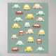 Um bom padrão de carro retrô em um fundo verde sábio. Arte original de Nic Squirrell.