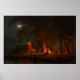 Pôster do Fogo de Acampamento ao Luar da Carroça Conestoga Oregon Trail