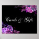 Poster de casamento preto "Cartões e presentes" com flores roxas de aquarela. Entre em contato comigo, por favor, se precisar de itens adicionais.