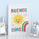Bom dia! Pendure esta arte feliz da creche no quarto do seu novo bebê ou filho. O sol, as nuvens e os arco-íris brilharão intensamente em qualquer lar bilíngue e de língua espanhola.