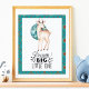 Gráfico de veado em aquarela e lua azul com citação em estilo tipográfico "Sonhe Grande Pequeno" com borda azul boho torna-se uma adorável adição a qualquer parede de berçário ou quarto de crianças.