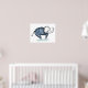 Roupas de Banho de Modelos de Elefante apresenta um perfil de elefante fofo em um traje de banho listrado de azul marinho e branco.