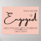 Sinalização de caligrafia minimalista "Estamos noivos", que adicionará um toque de elegância à decoração da sua festa de noivado. Este sinal de boas-vindas para festa de noivado é facilmente editável, para que você possa adicionar seus nomes, alterar o texto ou outros detalhes.