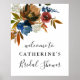 Este lindo sinal de boas-vindas apresenta flores profundas em ferrugem e azul marinho. Adicione suas informações usando o formulário de modelo. O recurso Personalizar Mais pode ser usado para acessar o menu de edição avançada, onde você pode alterar a fonte, as cores e o layout do texto.