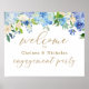 Cartaz de Boas Vindas de Festa de Compromisso Floral Azul Empoeirado