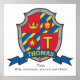 Escudo estilo cavaleiros monograma T arte nome pôster perfeito para o quarto ou sala de jogos de um menino em tons de vermelho, amarelo, azul e cinza. Personalize com o nome da sua criança e o significado do nome para um toque verdadeiramente personalizado no quarto ou berçário da sua criança, este exemplo é para o nome Thomas Twin. Engraçado, carismático, prático e atlético. Impressão de pôster ideal como presente para um menino recém-nascido, para um batizado, nomeação de bebê ou presente de churrasco de bebê. Desenho de escudo único, arte gráfica e design por Sarah Trett. www.sarahtrett.com para www.mylittleeden.com