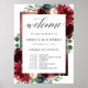 Este é um belo retrato poster bem-vindo da ordem dos eventos... sinal de casamento com texto de roteiro e um quadro floral e de ouro rosa.