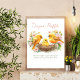 Pequenas aves eclodiram em breve primavera chá de fraldas editável modelo cartaz de bife poster imediatamente descarregamento digital decor personalizado de mesa, par de pássaros amarelos giros com pintinho de eclosão num ninho com primavera florescências chá de fraldas sinal de mesa fralda