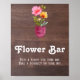 Adicione charmosos tons rústicos ao seu evento com este Cartaz de Bar de Flores Rústico apresentando jarros de Mason e um design de buquê floral. Este sinal convida os convidados a criar seus próprios buquês, tornando-o um toque divertido e interativo para qualquer chá de noiva, chá de bebê ou celebração com tema country. Com seu estilo rústico quente e ilustração encantadora de jarro de Mason, ele complementa perfeitamente uma estação de flores DIY. Exiba-o em seu bar de flores para uma configuração linda e digna de foto.