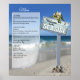 Casamento de Verão na Praia com rosas floribundas brancas sobre o arco enquanto você caminha por um tapete de areia com ondas quebrando ao fundo para inspirar uma paleta que define o cenário para um visual chic e glamoroso para personalizar o cartaz de menu