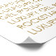 Este modelo de cartaz de parede extra grande dourado e preto contemporâneo e moderno para lista de preços de salão está configurado e pronto para você sobrescrever com todos os seus próprios serviços e preços de menu de salão. Você pode fazer isso simplesmente digitando sobre o texto de exemplo nas caixas acima à direita ou pode pressionar o botão 'personalizar' para ir para a área de edição mais detalhada, onde você pode mover e alterar as coisas, se necessário. (lembre-se apenas de verificar todas as suas alterações e ortografia porque o que você altera é o que será impresso).