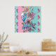 Cartaz cor-de-rosa Água de pintura de rosa de flor de pássaro Budgie azul. Este lindo cartaz complementaria qualquer decoração. Projetado a partir de uma das minhas pinturas originais.