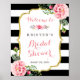 Sinal de Noiva Floral Rosa Moderno e Luxuoso para Chuva de Noiva em formato de pôster.