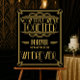 Arte Deco Sinal de Casamento Guia seus convidados com glamour vintage usando esta placa de casamento Art Deco, projetada por The Arty Apple. Apresentando uma ousada tipografia de ouro e fronteiras geométricas em um fundo preto elegante, ele diz: "Agora que estamos juntos para sempre, queremos que você se sente onde quer que esteja." Perfeito para recepções, casamentos com temas Gatsby, comemorações de vinte e poucos anos, aniversários ou eventos de gravata negra, esta na moda adiciona 1920 elegância à sua decoração. Um alternativo moderno aos planos tradicionais de assentos, esta placa faz com que os convidados se sintam bem-vindos ao mesmo tempo que melhora sua celebração com a sofisticação do Art Deco.