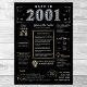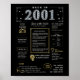 Faça uma viagem de volta a 2001 com o nosso cativante cartaz de aniversário digital, repleto de fatos históricos, eventos significativos e narrativas cativantes do passado. Adornado com elegantes acentos dourados e prateados contra um impressionante fundo preto, este cartaz de aniversário irradia charme atemporal.