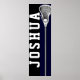 design de taco de lacrosse em um fundo azul marinho. Edite o texto para adicionar o nome do jogador.