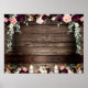 Um quadro de papelão de pôster extra grande, 54 por 40 polegadas, com um fundo de madeira de tábua de celeiro rústico vintage recuperado. Um ramo de flores profundas em burgundy e rosa velho cascata entre guirlandas de folhagem prateada e buquês florais românticos iluminados por velas, repletos de flores de peônia e borrifos de arte floral. Este pôster é em branco para que você possa inserir seu texto e usá-lo para qualquer ocasião.