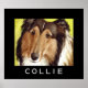 Arte em aquarela de Collie impressa em cartazes para amantes de cães com borda de fundo preto