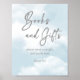 Chá de fraldas azul-pastel em nuvem, cinza azul-poeirento editável, modelo livros e presentes com sinal poster digital download, decor personalizado de chá de fraldas, nuvens de cinza, presentes de script de fontes casuais modernos com sinal poster personalizado de decoração de mesa.
