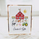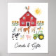 Mostre aos amigos e à família onde deixar os presentes no seu aniversário com esta placa temática de fazenda, com todos os tipos de animais de exploração e um grande celeiro vermelho!