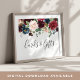 Projetado para combinar com a nossa coleção de casamento do Radiant Bloom, este elegante sinal botânico permite que os hóspedes saibam onde largar as suas cartas e presentes. Personalize com uma linha de texto personalizado na letra de script de caligrafia (mostrada com "Cartões e presentes"), enquadrado por flores de cor d'água com tons de joias ricas e folhagem verde.